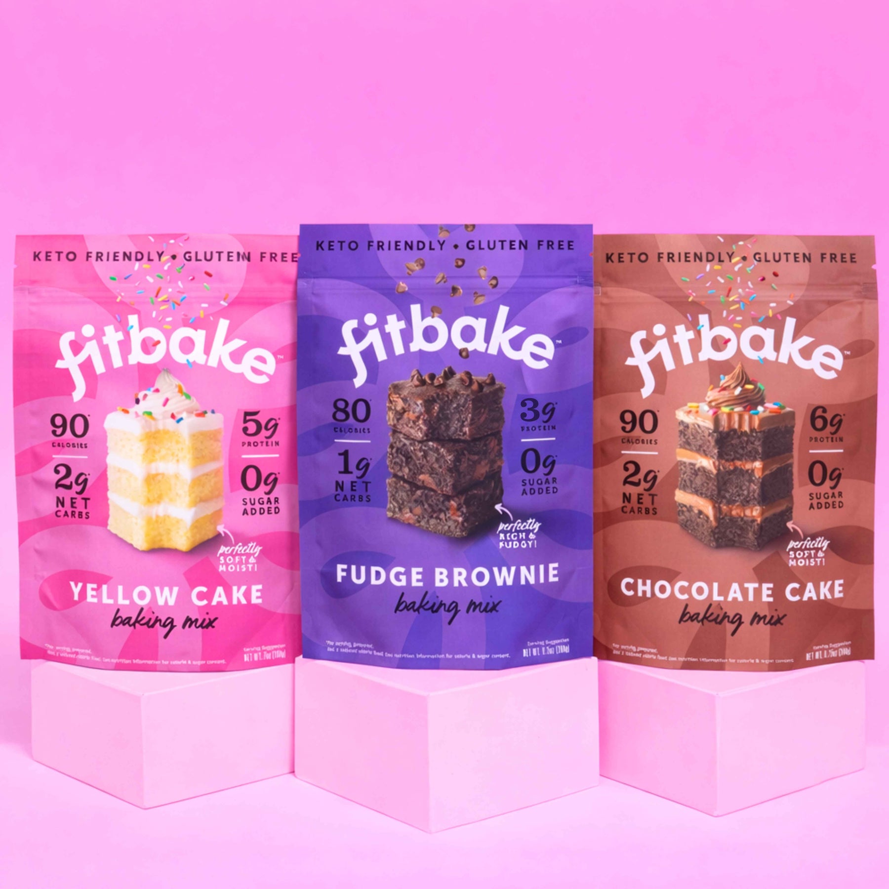 Try all three of our best selling dessert baking mixes: fudge brownie, yellow cake, and chocolate cake! 100% keto friendly, no-sugar-added, gluten-free, with all the delicious taste and texture you know and love + higher protein than traditional cakes or brownies.